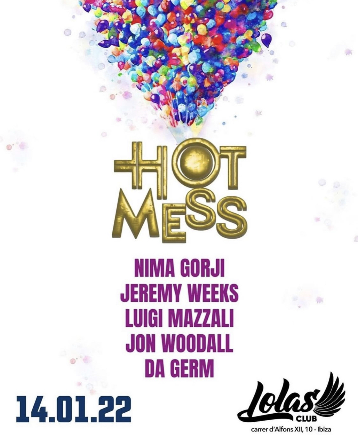 HOT MESS + Add to Google Calendar + iCal / Outlook export Date 14 Jan 2022 Expired! Time All Day Location LOLAS CLUB Club LOLAS CLUB Artist DA GERM DA GERM JEREMY WEEKS JEREMY WEEKS JON WOODALL JON WOODALL LUIGI MAZZALI LUIGI MAZZALI NIMA GORJI NIMA GORJI Share this event