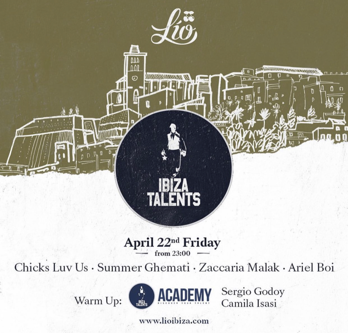 IBIZA TALENTS · ACADEMY + Add to Google Calendar + iCal / Outlook export Date 22 Apr 2022 Expired! Time All Day Event Label IBIZA TALENTS Location LIO IBIZA Club LIO IBIZA Artist ARIEL BOI ARIEL BOI CHICKS LUV US CHICKS LUV US SERGIO GODOY SERGIO GODOY SUMMER GHEMATI SUMMER GHEMATI ZACCARIA MALAK ZACCARIA MALAK Share this event