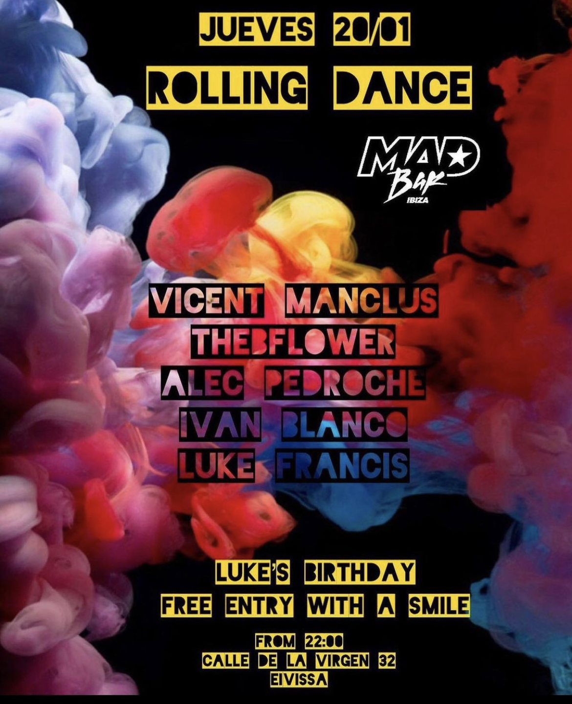 ROLLING DANCE + Add to Google Calendar + iCal / Outlook export Date 20 Jan 2022 Expired! Time All Day Location MAD BAR IBIZA Club MAD BAR IBIZA Artist ALEC PEDROCHE ALEC PEDROCHE IVAN BLANCO IVAN BLANCO LUKE FRANCIS LUKE FRANCIS THEBFLOWER THEBFLOWER VINCENT MANCLUS VINCENT MANCLUS Share this event
